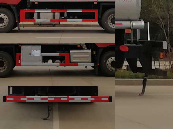 | 配置 | 1、該車適用于危險(xiǎn)品運(yùn)輸,運(yùn)送危險(xiǎn)貨物車輛類型為:FL型,類項(xiàng)號(hào):3。運(yùn)輸介質(zhì):汽油,密度:700千克/立方米。罐體有效容積21.4立方米,罐體外形尺寸(長(zhǎng)×寬×高)(mm):7000×2350×1580。2、側(cè)、后防護(hù)材料均為Q235,螺栓連接;后防護(hù)截面尺寸(寬×高)(mm)60×120,下邊緣離地高500mm。3、EBS系統(tǒng)生產(chǎn)廠家及型號(hào)分別為:威伯科汽車**系統(tǒng)(**)有限公司(EBS3)。僅選用排氣管前置、限速裝置(限速79km/h)、前輪盤(pán)式制動(dòng)及子午線輪胎的底盤(pán);安裝帶有衛(wèi)星定位功能的行駛記錄儀;發(fā)動(dòng)機(jī)型號(hào)及油耗值(L/100km)為:WP7.270E61/36.79,WP7.300E61/36.79。后軸采用空氣懸架。轉(zhuǎn)向輪安裝輪胎爆胎應(yīng)急防護(hù)裝置。 | ||