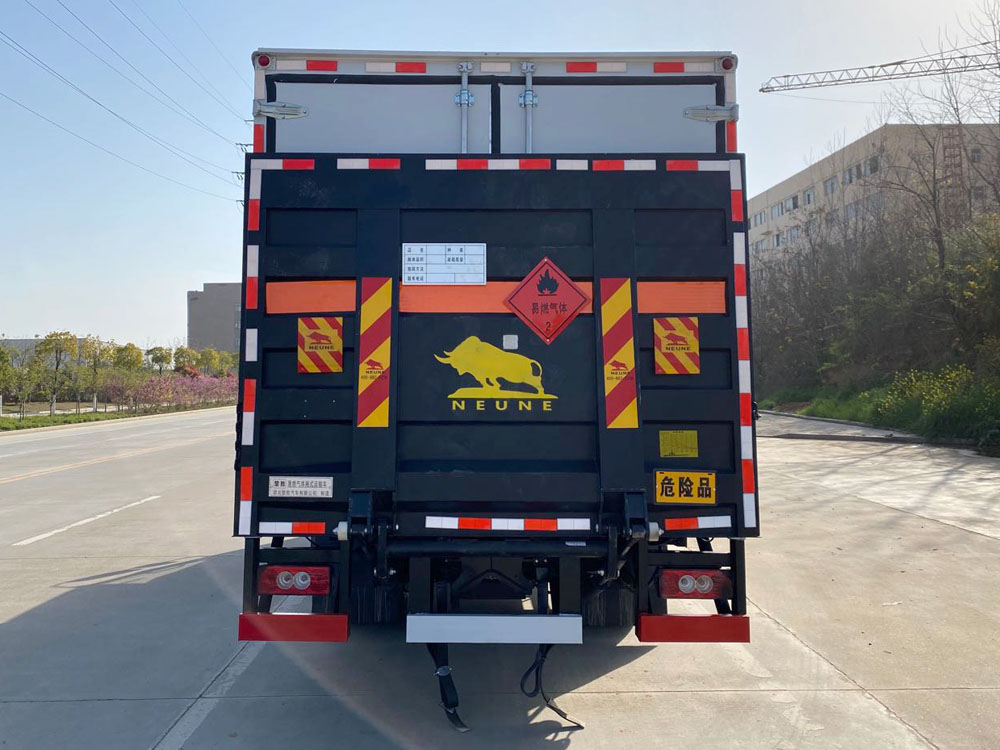 | 配置 | 1、該車適用于運輸危險品,運輸具有**容器(瓶)包裝的物品,運送危險物品類項號:2.1,2.2.廂體頂部封閉不可開啟.2、側后防護材料均為Q235,螺栓連接;后防護截面尺寸(mm)120×60,下邊緣離地高460mm.選裝后部無尾板,廂體側面選裝開門型式及位置,選裝后門雙拉桿,選裝不帶側開門,選裝瓦楞板結構,廂體側面板選裝開百葉窗.3、該車僅采用3800mm軸距改裝.隨底盤選裝排半駕駛室.僅選用排氣管前置、限速裝置(限速80km/h)、前輪盤式制動及子午線輪胎的底盤;轉向輪裝備輪胎爆胎應急防護裝置。安裝帶衛(wèi)星定位功能的行駛記錄儀。ABS系統**器型號/生產企業(yè):ABS-E/威伯科汽車**系統(**)有限公司。發(fā)動機/油耗值(L/100km)對應關系為:F3.8NS6B156/17.17。尾板收起狀態(tài)水平長度為300mm,尾板質量為450kg。選裝直接供電式ETC車載裝置。F3.8NS6B156發(fā)動機**大凈功率為112Kw. | ||
