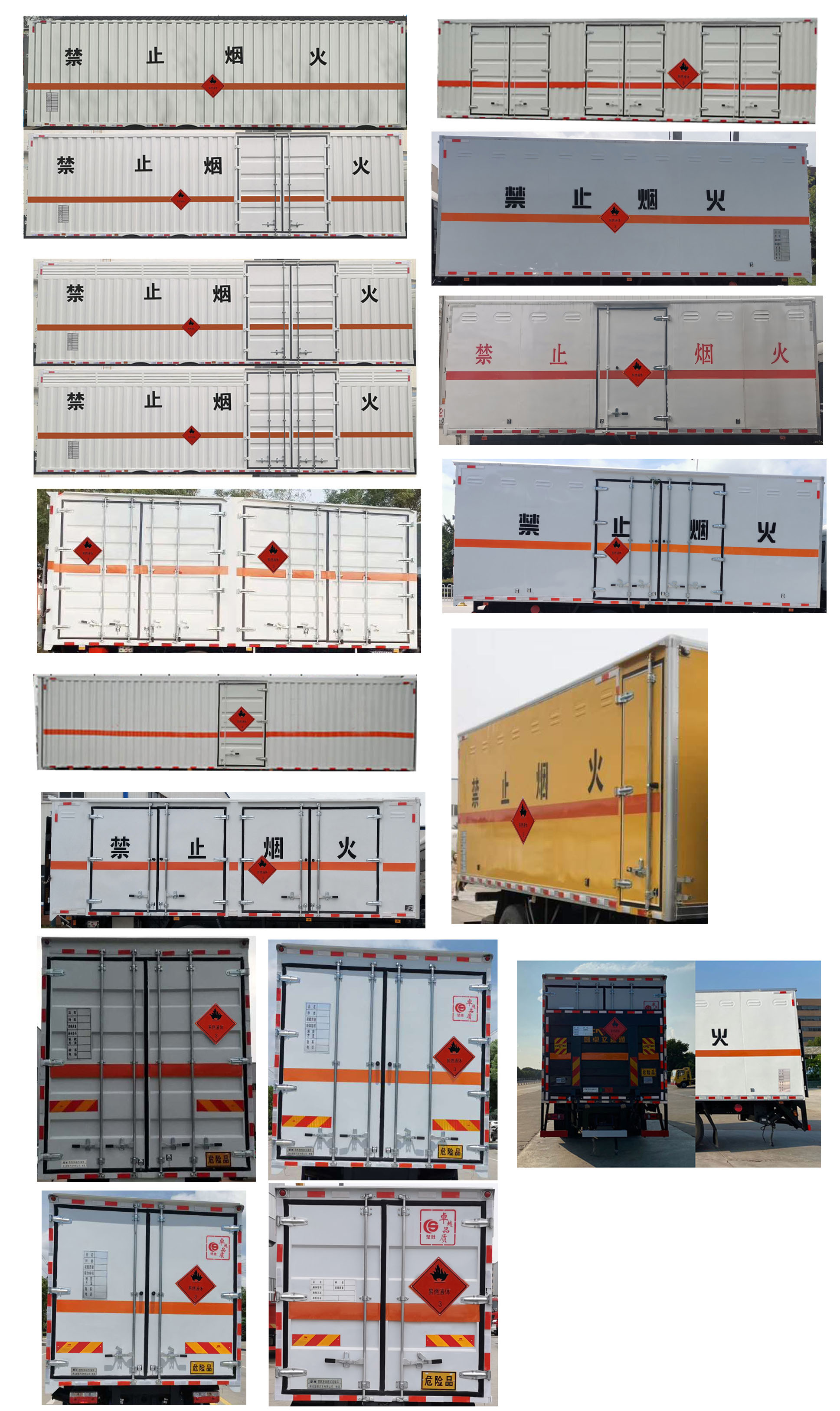 | 配置 | 1、該車適用于運輸危險品,運輸具有**容器(瓶)包裝的物品,運送危險物品類項號:3。廂體頂部封閉,不可開啟。2、側(cè)/后防護材料為Q235,側(cè)防護螺栓連接,后防護焊接,截面尺寸120×60mm,下邊緣離地高490mm。3、僅采用軸距(mm):4700,5000。隨底盤選裝駕駛室前面罩,選裝側(cè)窗玻璃,駕駛室頂部中間三個裝飾燈為選裝件,前霧燈為選裝件,駕駛室前臉擾流罩為選裝件。僅選用排氣管前置、限速裝置(限速80km/h)、前輪盤式制動及子午線輪胎的底盤,安裝帶有衛(wèi)星定位功能的行駛記錄儀,EBS型號/生產(chǎn)廠家:EBS5/東科克諾爾商用車制動系統(tǒng)(十堰)有限公司。采用的發(fā)動機與油耗值(L/100Km)對應關系為: B6.2NS6B210/26.5,DDi50E190-60/23.9。4、廂體側(cè)面選裝開門型式及位置,選裝不帶側(cè)開門,選裝瓦楞板結(jié)構;廂體側(cè)面板選裝開百葉窗。選裝尾板,尾板收起狀態(tài)水平長度為290mm,尾板質(zhì)量為550kg。選裝ETC。 | ||