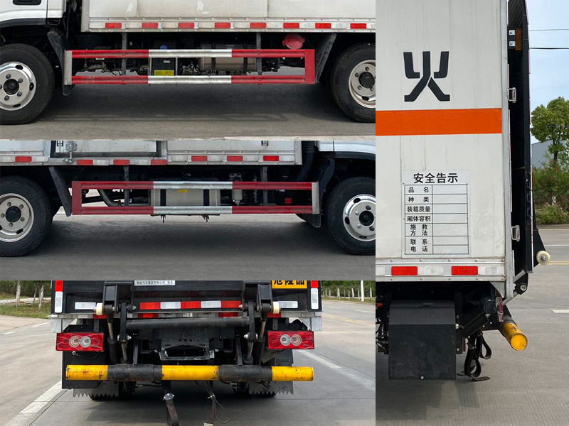 | 其它: | 1、該車為危險品運輸車,運輸具有獨立容器(瓶)包裝的物品,運送危險物品類項號:9。廂體頂部封閉,不可開啟。2、側、后防護材料均為Q235,螺栓連接,后防護截面尺寸(mm)Φ100,下邊緣離地高390mm。選裝后部無尾板時,后防護材料為Q235,螺栓連接,截面尺寸(mm)120×60,下邊緣離地高400mm。尾板收起狀態(tài)水平長度為280mm,尾板質量為350kg。3、整備質量含備胎,滅火器及隨車工具;貨廂重量為1050kg;材質/厚度:復合板結構廂體:底板材質為Q235,厚度4mm,側板為外Q235+中間阻燃泡沫+內純鋁板,厚度42mm;瓦楞板結構廂體:底板材質為Q235,厚度4mm,側板為Q235,厚度1.5mm。4、僅選用排氣管前置、限速裝置(限速80km/h)、前輪盤式制動及子午線輪胎的底盤,轉向輪安裝輪胎爆胎應急防護裝置。安裝帶有衛(wèi)星定位功能的行駛記錄儀。ABS系統(tǒng)控制器型號/生產(chǎn)企業(yè): :YF8/武漢元豐汽車電控系統(tǒng)有限公司,ABS-E/威伯科汽車控制系統(tǒng)(中國)有限公司,ABS-VI·E/廣州瑞立科密汽車電子股份有限公司,YF9/武漢元豐汽車電控系統(tǒng)有限公司。發(fā)動機/油耗值(L/100km)對應關系為: D20TCIF2/11.22,D25TCIF1/11.16, D20TCIF1/11.22。僅選用3360mm軸距,選裝ETC。廂體側面選裝開門型式及位置,選裝不帶側開門,選裝瓦楞板結構;廂體前后及側面選裝開百葉窗,選裝后尾板樣式,選裝無后尾板。 |