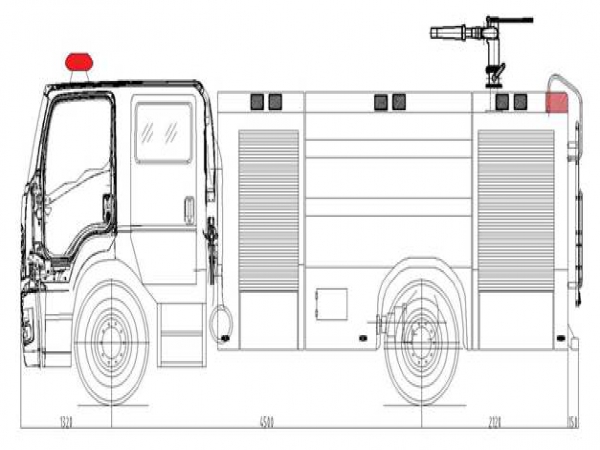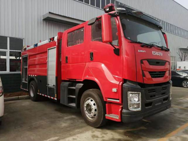 7噸消防車采用慶鈴汽車股份有限公司QL1180EQFRY 型二類汽車底盤,改制雙排駕駛室,乘員2+3人,該車駕乘舒適輕便。上裝采用內(nèi)藏式水罐,整車載液量水為4650kg,泡沫為1950kg。器材箱采用高質(zhì)量鋁合金卷簾門。底盤取力,發(fā)動機型號為6HK1-TCG61,最大功率177kW,通過萬向聯(lián)軸器驅動安裝在汽車尾部泵房里的上海雄真CB10/60型常壓消防泵,可在1.0MPa下穩(wěn)定輸出60L/s的流量;車頂安裝成都威斯特消防器材有限責任公司生產(chǎn)的PL8/48型消防炮(泡沫消防車),流量48L/s,對應壓力0.8MPa,最大承壓1.3MPa,射程 水≥70m 泡沫≥60m,可360°旋轉。同時該車具有比功率大、綜合性能強、操控集中簡便等特點。