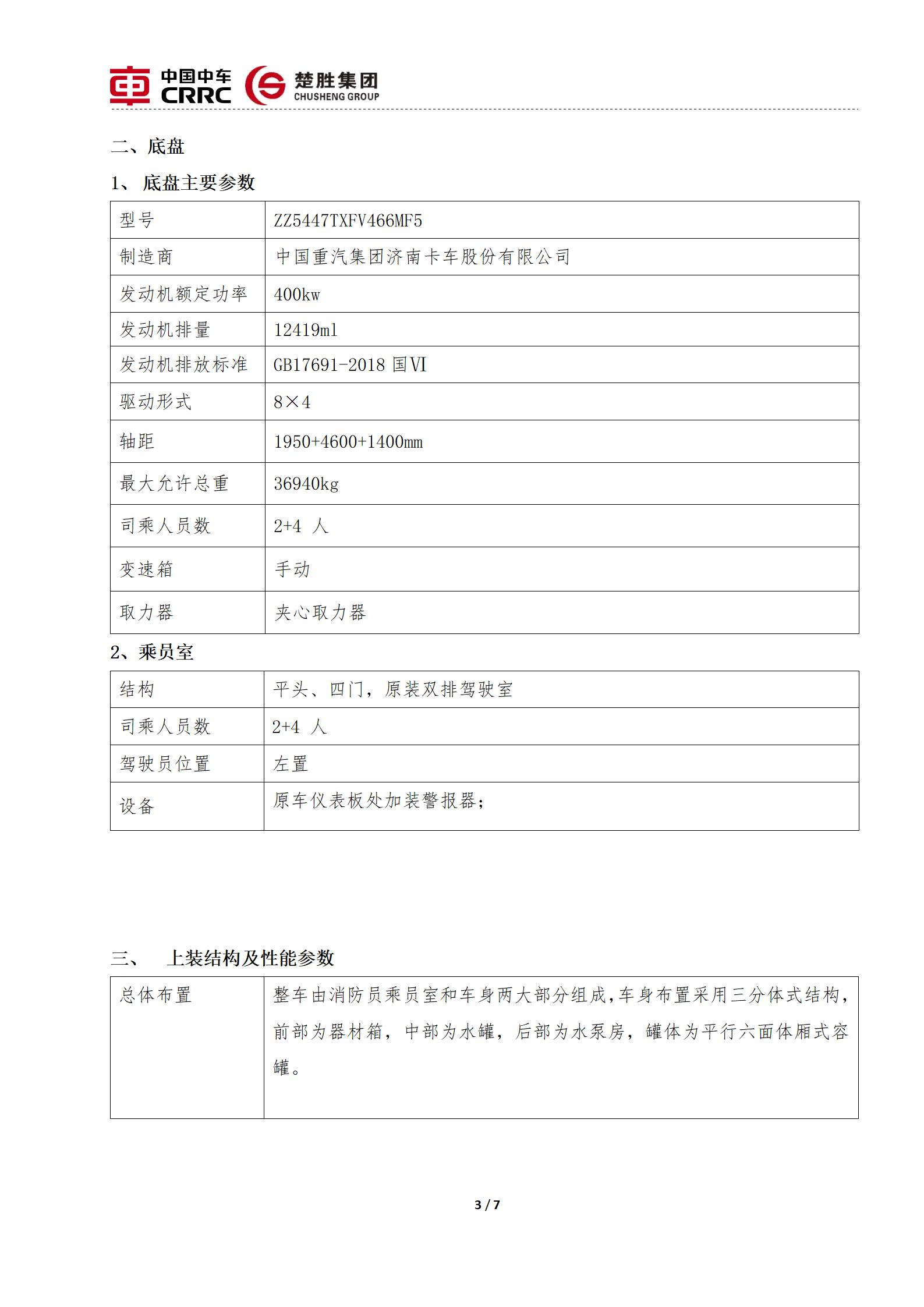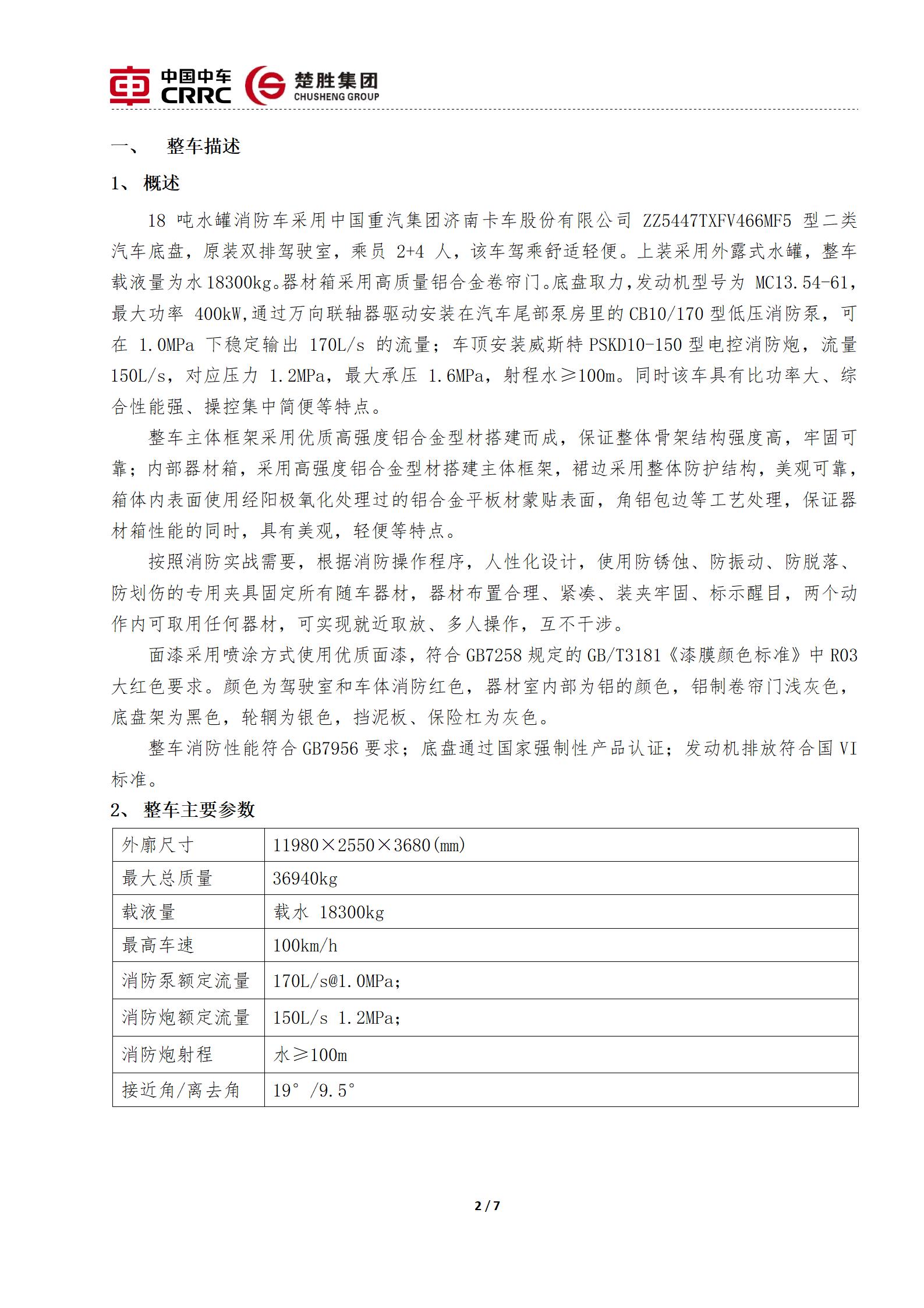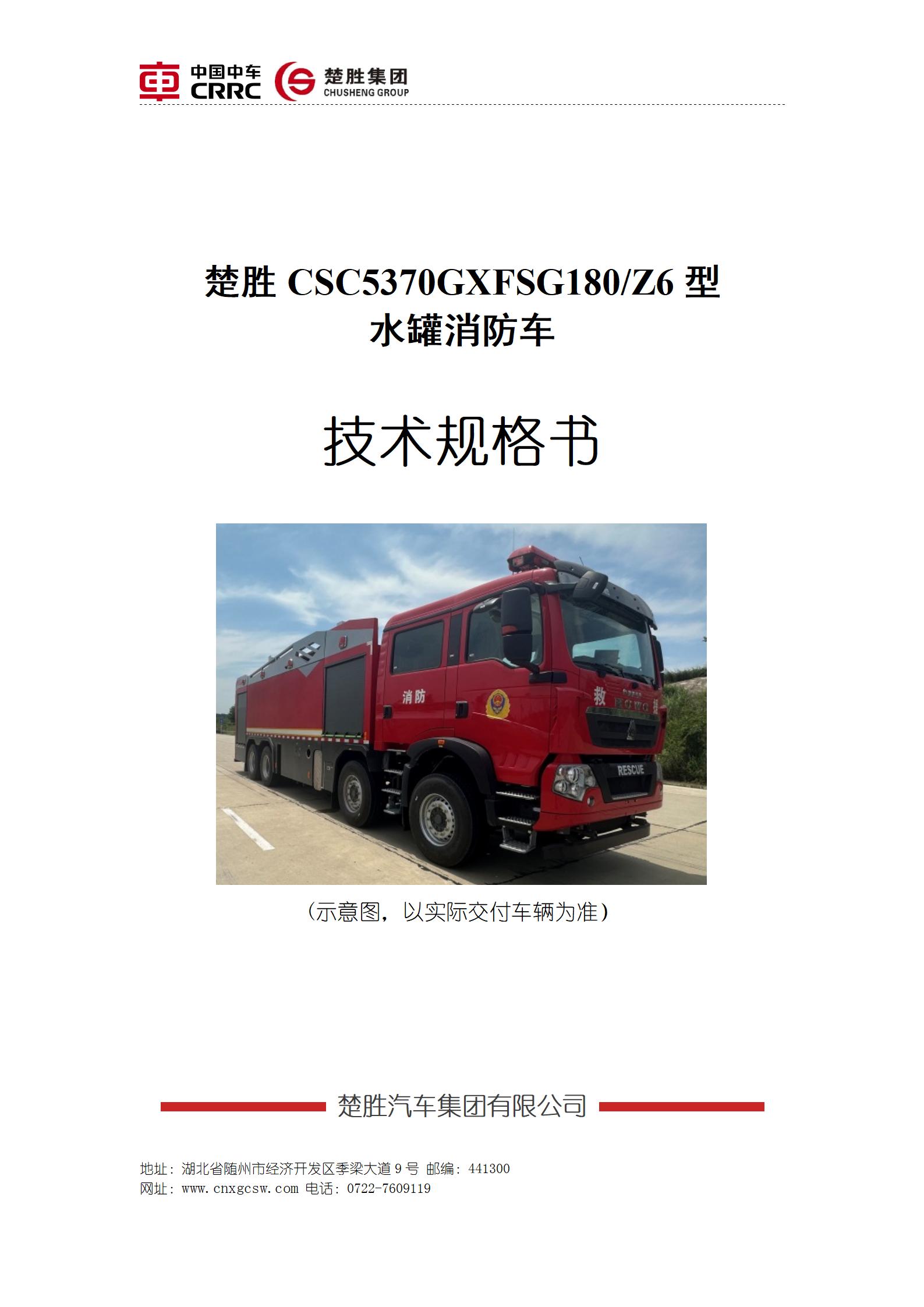 楚勝牌CSC5370GXFSG180/Z6型水罐消防車(chē)